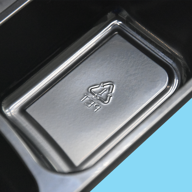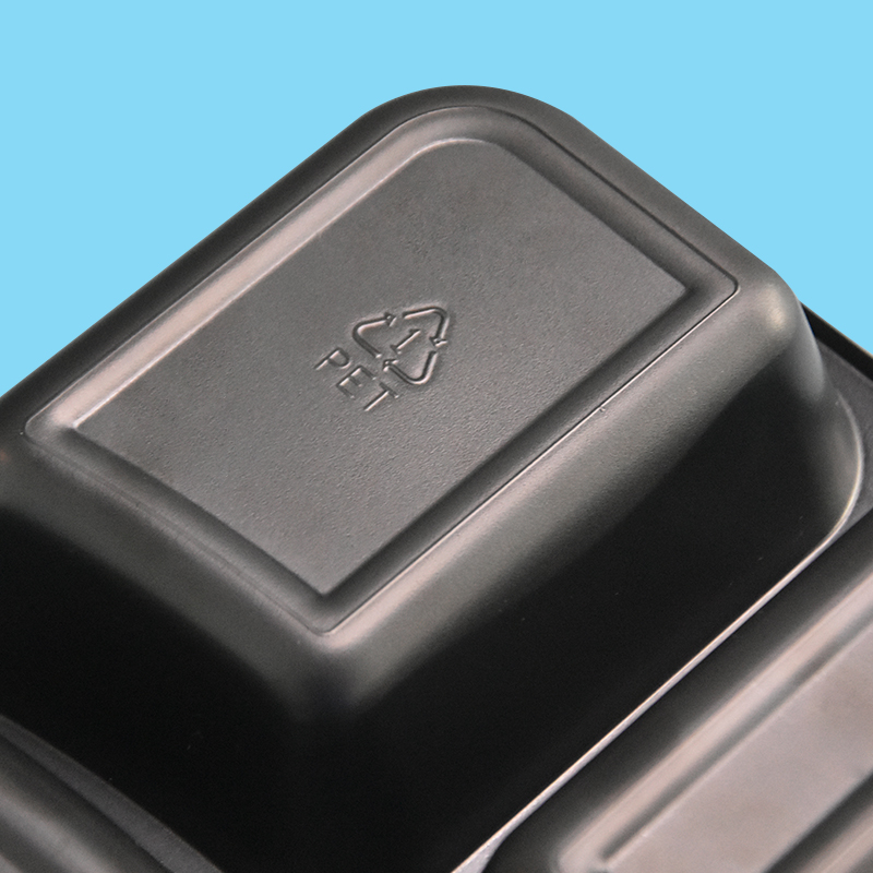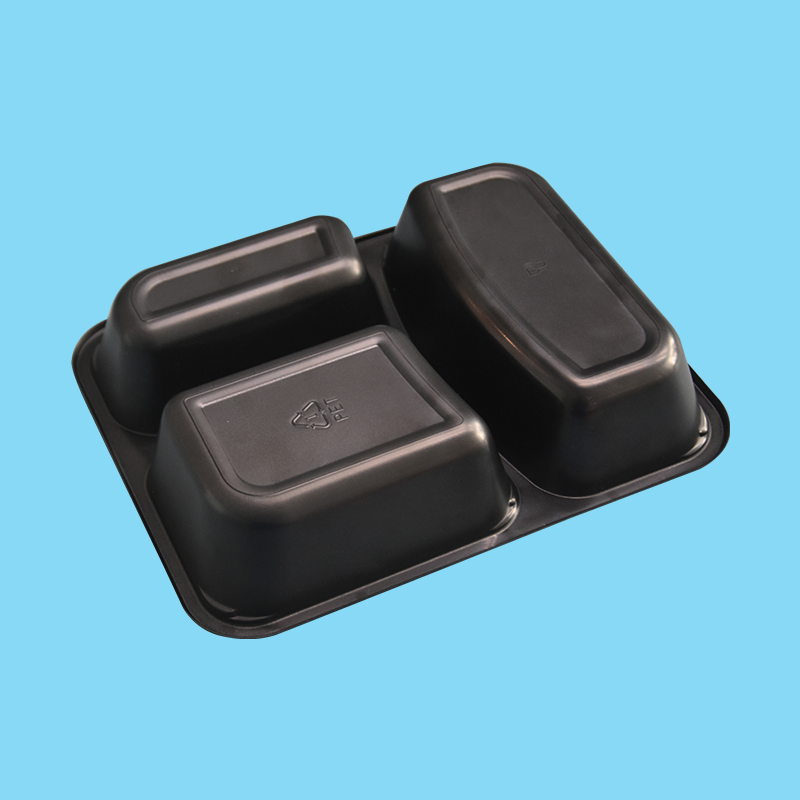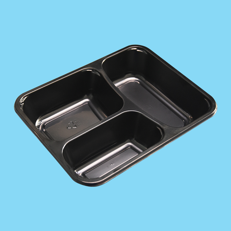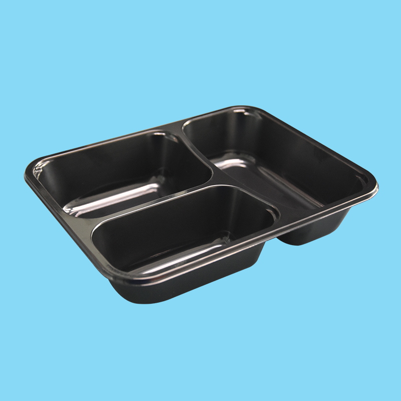 Customized PET Black Triple Grid High Temperature Resistance Food Packaging Tray – Durable, Stylish & Versatile